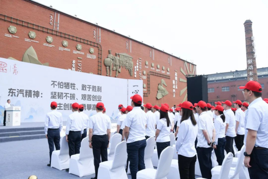 与会人员集体诵读东汽精神并观看文献纪录片《东方》之《勇攀高峰》,以《奋进东方》表演展示凝聚团结奋斗之力。